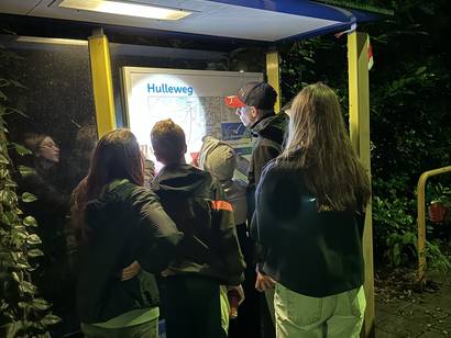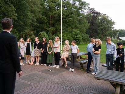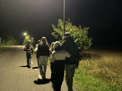 Na een dag op zoek naar de mol, denk je alles gehad te hebben. Na de test zonder executie werden we in auto's gestopt. De auto's scheurden weg en schoten de snelweg op. Was het de A1 of de A50? Ik weet het niet meer, het ging zo snel. Toen de auto's tot stilstand kwamen werden we uit de auto gezet en gemaand om mee te lopen een donker pad op. We zagen geen hand voor ogen, maar een ruizend geluid werd steeds luider en luider. Opeens moesten we een reling vasthouden. Klam en nattig. We rilden van angst. Het was toch de verdrietige dag? Of is het al morgen? Is het de dag van de angst? Het ruizende geluid was zo hard dat we elkaar niet meer konden verstaan. We stonden bij de hoogste waterval van Nederland: De Loenense Waterval. Terwijl het vele water oorverdovend naar beneden kletterde hoorde wij wat ons te doen stond: vind je weg terug naar het Woldhuis.