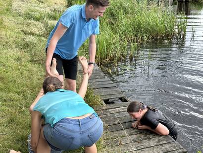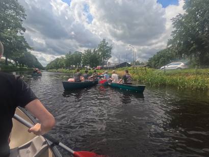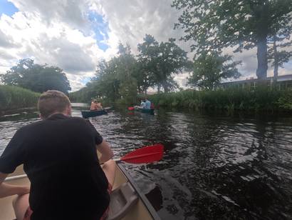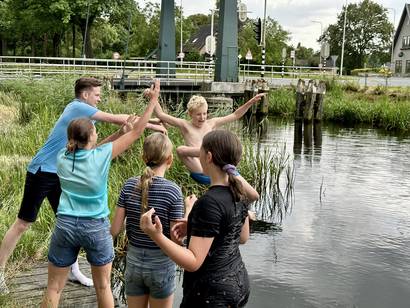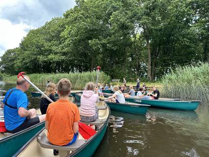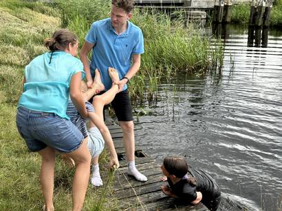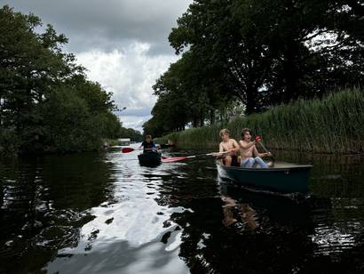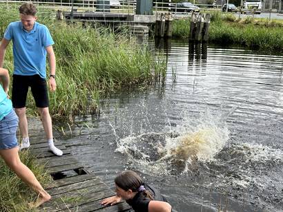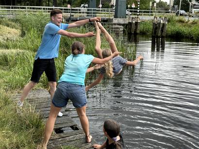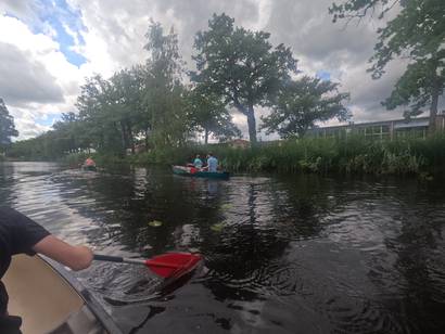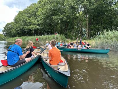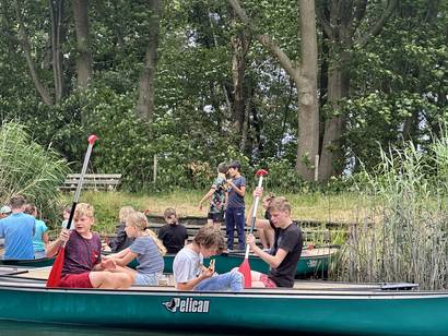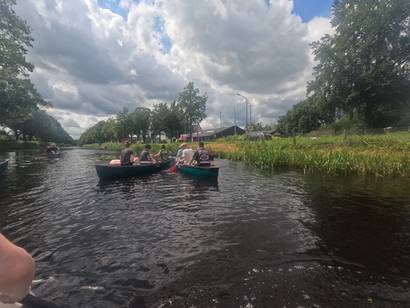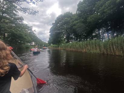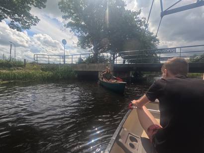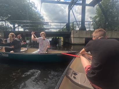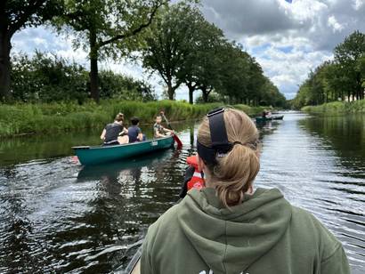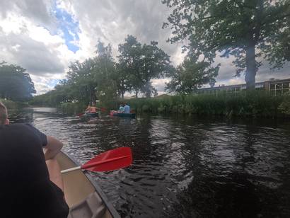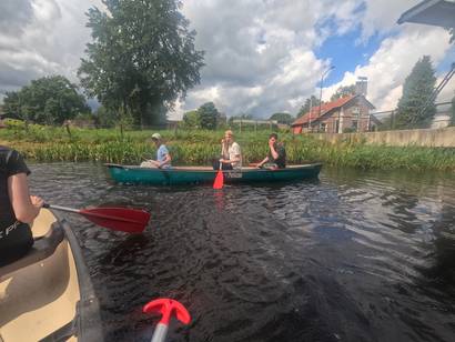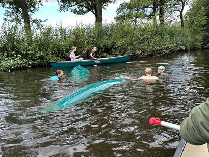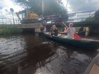 We hebben woord gekregen dat de verdrietige mol zoveel huilt, dat de straten overstroomden. Daarom is hij verhuisd naar de waterkant van het Apeldoornskanaal. Dat kun je natuurlijk het beste onderzoeken vanaf het water. Dus hup, de kano in! Met zijn allen zijn we gaan varen. Halverwege sloegen opeens drie kano's om! Was dat de mol? Of was hij toevallig net de kano uit voor het gebeurde?