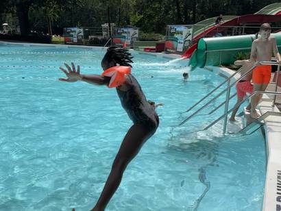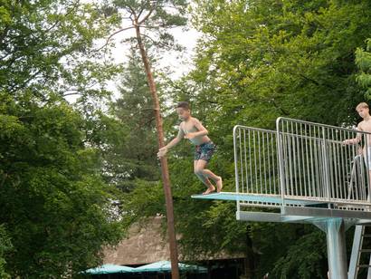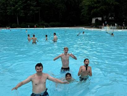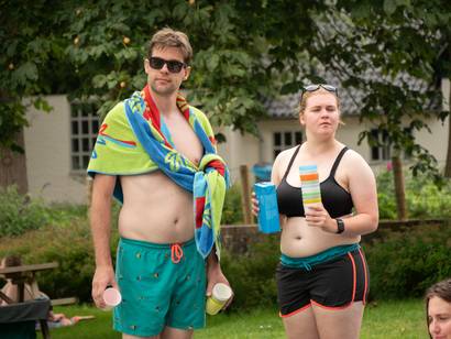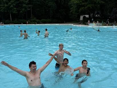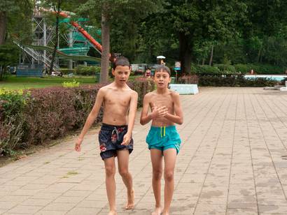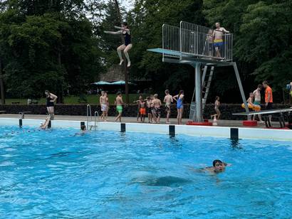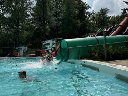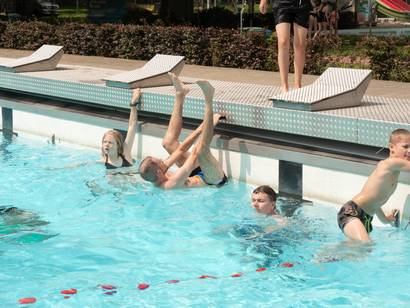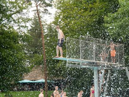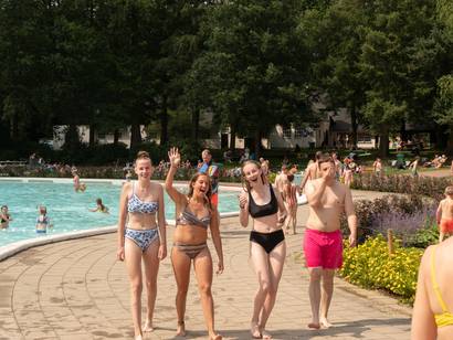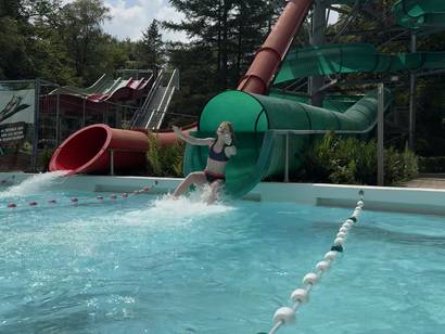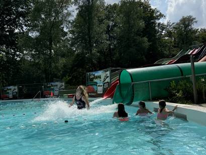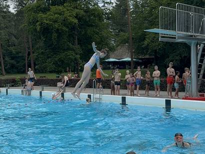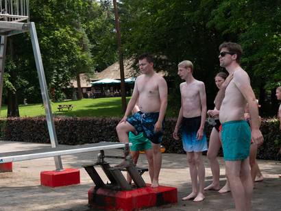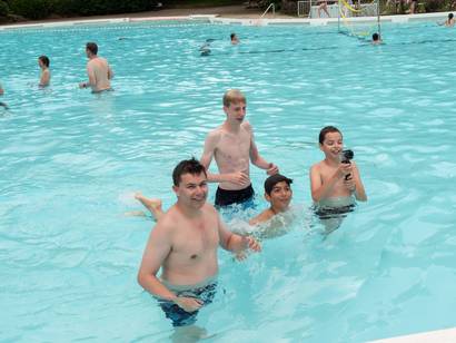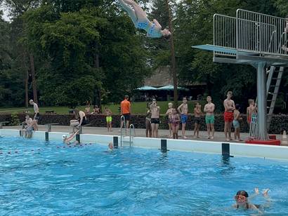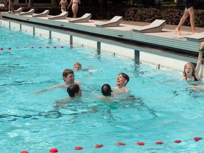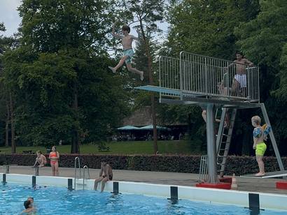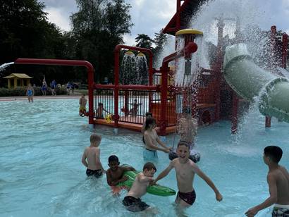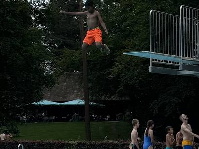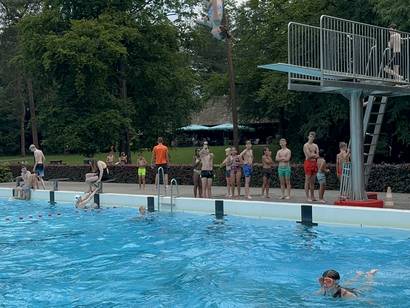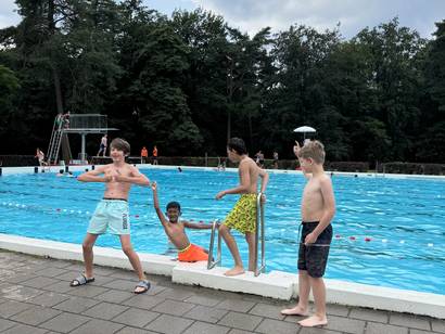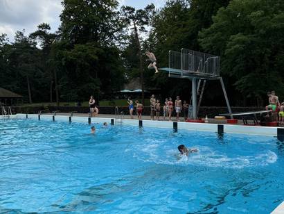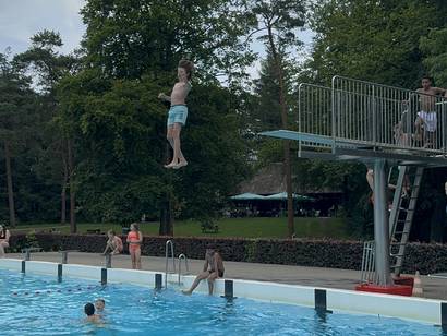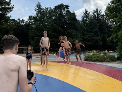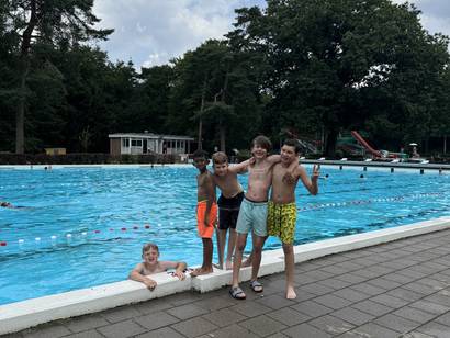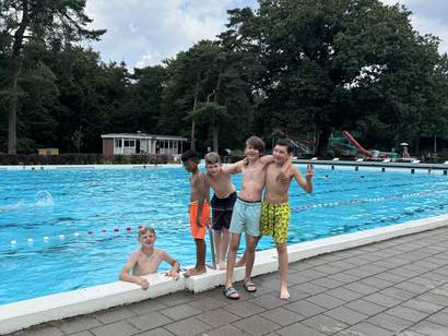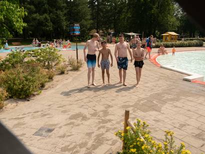 De leiding zei dat we onze zwembroek moesten aantrekken en dat ze niet gingen vertellen wat we gingen doen. Wat een flauw grapje! Natuurlijk wisten we meteen wat we gingen doen! Zwemmmmmmen! En niet zomaar zwemmen, we gingen zwemmen in het Boschbad! Wat een supervet zwembad was dat. Heel veel glijbanen. De rode glijbaan ging echt vet snel en de groene glijbaan was superlang. Tijdens een potje sprinten in het 50-meter hebben we echt alles gegeven. Maar Wouter konden we niet bijhouden, dus hij is duidelijk niet de mol.