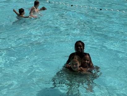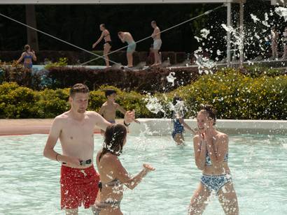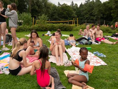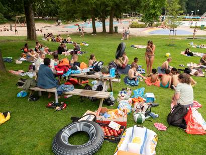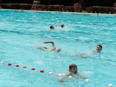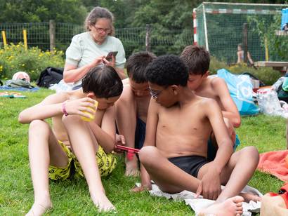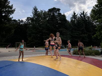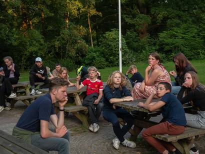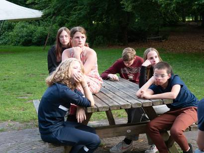 Na een lekker lange dag in het zwembad zijn we helemaal zen. Of gewoon kapot moe. Tristan en Twan hebbende hele dag pannenkoeken gebakken. Lekker! Het zijn er echt superveel en we mogen zoveel halen als we willen. Tristan heeft ons wel gewaarschuwd dat we ons niet misselijk moeten eten, dat we rustig aan moeten doen. Dat kunnen wij natuurlijk...