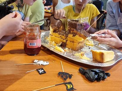 We kunnen nog meer goud verdienen door mee te doen aan een wedstrijd: Heel Brazilië Bakt! Wie bakt de mooiste taart? Al mijn jonge rekruten staan ingeschreven en wat is er nou mooier dan een taart die eruit ziet als een piratenboot.