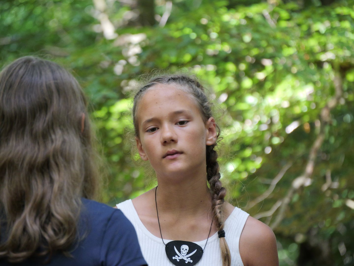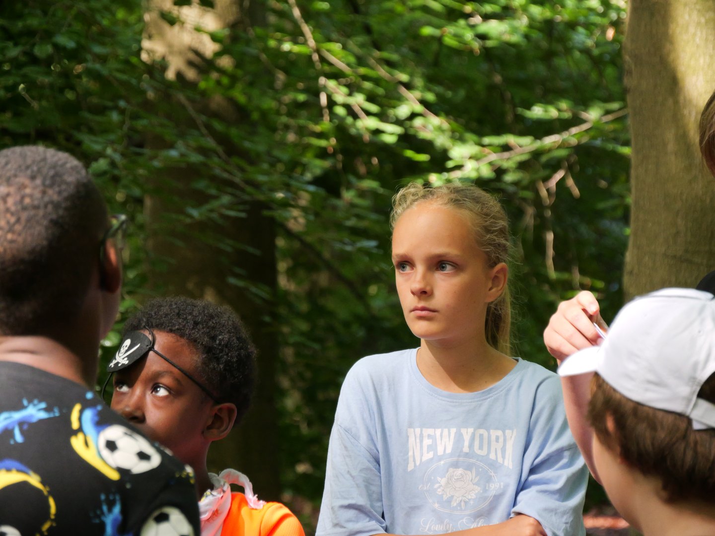 Onderweg naar het bal zijn we de weg kwijtgeraakt. We staan in het donker, aan de rand van een groot meer. Het water ziet er rustig uit en geen andere piraten in het zicht. Het bal kunnen we nu wel vergeten. Zouden we de weg terug naar ons kamp nog kunnen vinden?