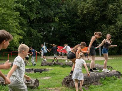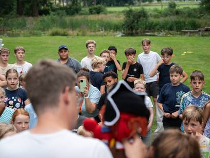 Na het scheepsmaal – waarbij zelfs Papegaai Hans Kraai Jr. z’n snavel aflikte – begon een reeks keiharde beproevingen voor de jonge piraten. Ze streden om eer in een razendsnel potje Boter, Kaas en Eieren, testten hun geheugen met een pot Reuze Memory, en lieten hun zeebenen trillen bij het vurige Doorgeefvoetbal. Daarna trotseerden ze samen hindernissen tijdens de Estafette, en tot slot werd er geblinddoekt geknokt om punten bij het Blind Volleybal. Eén ding is zeker: wie hier standhoudt, is klaar voor de jacht op de schat.