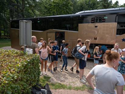 Vandaag zijn wij uitgevaren met ons met goud beklede ZDS-busgaljoen. Mijn bemanning bestaat uit meer dan vijftig nieuwe rekruten, een hand vol matrozen, twee man kombuispersoneel, een scheepsarts, mijn trouwe papegaai Hans Kraai en dan is er natuurlijk nog de kapitein: ikzelf, de gevreesde Kapitein Hoogglans.